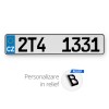 Placa tip numar auto Cehia, dimensiune standard (52x11cm) cu un sticker.