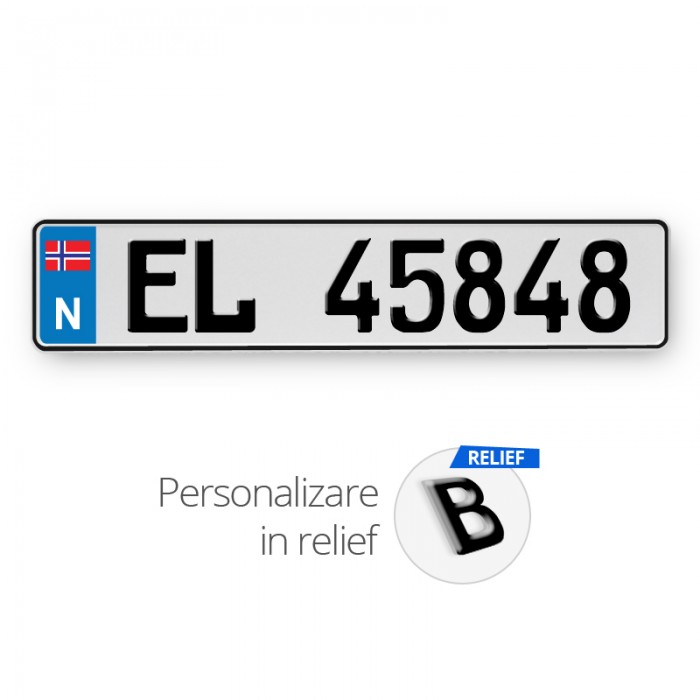 Placa tip numar auto Norvegia, dimensiune standard (52x11cm).